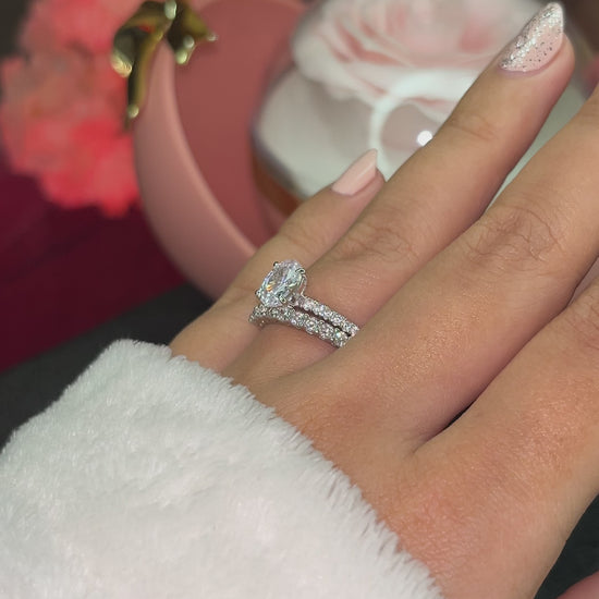 Élégante et romantique, cette bague de mariage en Argent Sterling 925 se distingue par sa pierre ovale au design délicat, sublimée par un rhodiage en or blanc pour une brillance éclatante et durable.